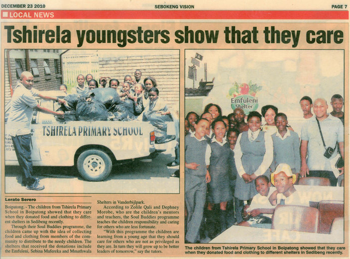 Our children showed that they care when they donated food and clothing to different shelters in Sedibeng